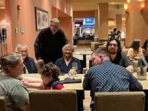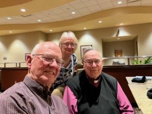 Our extraordinary weekend started with a gathering of our God loving parish meeting for dinner at a local hotel. Bishop Ashman, Father Andrews and his wife were honored guests. It was wonderful for several of our new members to meet our Bishop. Thank you Deb for arranging this fun gathering Friday night. I have attached a few images that Jane Roberts captured Friday evening. I also have attached a Passion Sunday homily that Father Ponec gave in 2020